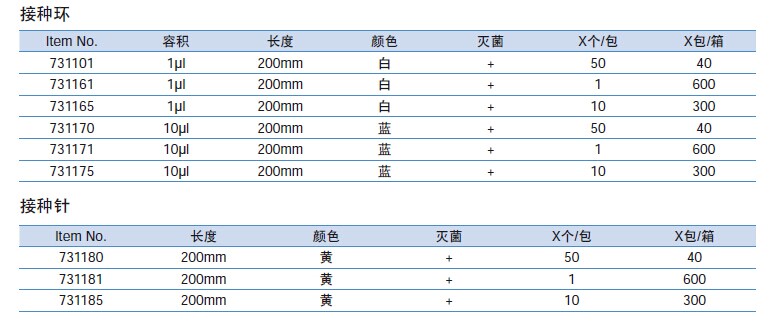 ● 顔色區(qū)分(fēn):1μL接種環(白(bái)色)、10μL接種環
