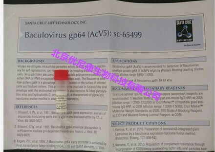 • recommended for detection of baculovirus envelope protein gp64 of AcNPV orig in by WB