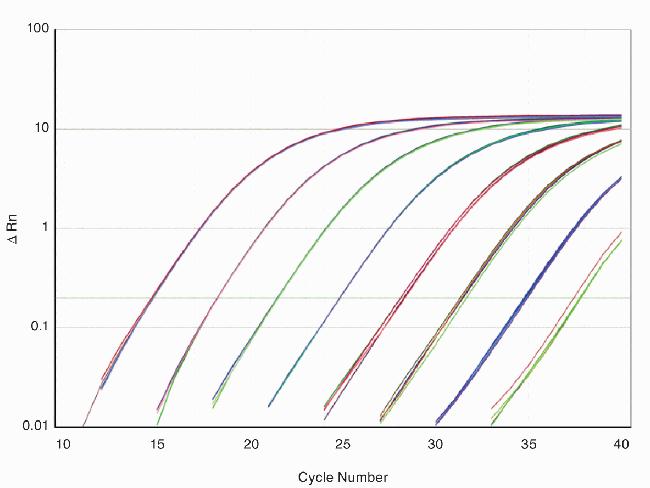 TaqMan® Fast Advanced Master Mix has been optimized for use withΩ both fast and standard instrumentation, enabling researchers who ♦currently own standard instruments to also reap the performance benefi♣ts and time savings this mix provides. Figure 5 showcases the impressive resul'ts achieved when using TaqMan® Fast Advanced Master Mix under fast therm₹al cycling conditions on Applied Biosystems® 7300 Real-Time PCR Syst→em. The mix has been tested with all Applied Biosystems standard real-time PCR& instrumentation (7900HT, 7500 and 7300 systems) to enable success independent of wδhether or not you own a fast-enabled instrument.