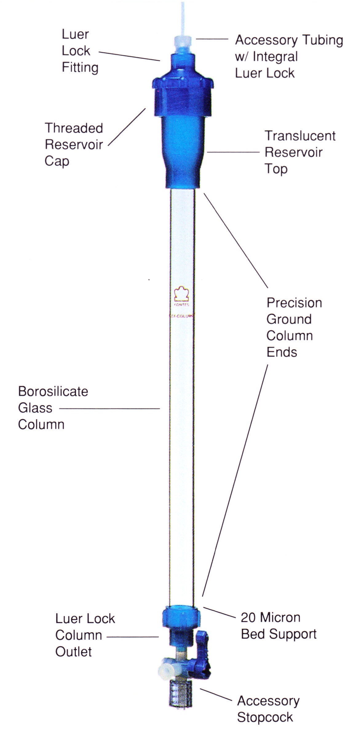 FLEX-COLUMNS® ECONOMY COLUMNS FLEX-COLUMNS® are economical and easy-to-use. Short colu§mns are typically used for ion exchange chromatography, sample desalting and semi-disposable applications, while the long columns are ideally suited for gel filtration and adsorpti÷on chromatography. · Constructed of polypropylene reservoirs and column outlets permanently connected to a borosλilicate glass barrel · 20 μm porosity polyethylene bed supports are fixed in the col§umn outlet · Luer lock inlets and outlets on the columns, along with a wide variety of adapters, valves and fitt>ings, provide simple and versatile tubing connections · Available in 30 different sizes with standard inside diameters of 0.7, 1.♣0, 1.5 and 2.5 cm and lengths ranging from 4 to 170 cm · Maximum pressure is 1.0 bar (14.7 psi, 1.0 atm, 0.1 MPa) · Temperature range is 0 to 50 °C · Sterilize with 2N NaOH or 100% ethanol; autoclaving is not recommended · All columns are fitted with translucent polypropylene reservoir t$ops and with bed supports that are permanently mounte¥d in the polypropylene column outlet · Cap, reservoir and column outlet are made of polypropylene · Bed support is manufactured from High Density Polyethylene (HDPE) with 20 micron nominal bed support porosity · Tubing connections are male Luer locks · Manufactured from 33 expansion, low extractable borosilicate glass conforming toγ USP Type I and ASTM E438, Type I, Class A requirements Note: Polypropylene end fittings are NOT replaceable on FLEX-COLUM≤NS®.