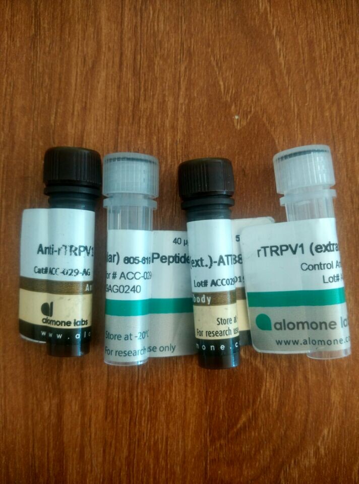 Alomone Labs is pleased to offer a highly specific antibody directed against an≠ extracellular  epitope of the rat TRPV1 channel. Anti-Rat TRPV1 (extracell✔ular) antibody (#ACC-029) can be used for western blot and immunohistochemistry applicati ons. It has been designed to recognize only rat TRPV1 samples∏.Related products for control experiments:Control pepti de antigen (supplied with the antibody free of charge). If you₩ know of a relevant citation for this product please let us know.