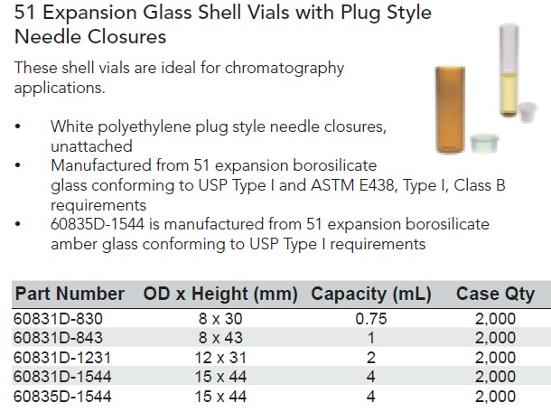 VIAL,SHELL,N51A,WHT PE PLUG,1ML